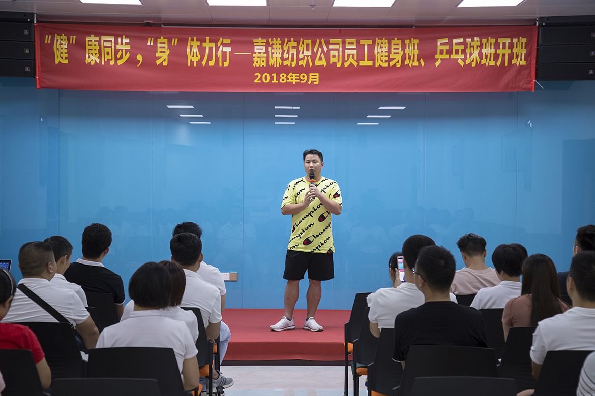開(kāi)班儀式上,首先由公司聘請(qǐng)的專業(yè)健身教練向職工介紹了健身鍛煉對(duì)身體的好處及注意事宜,健身可以讓大家身心健康,更加充滿活力;隨后總經(jīng)理助理蔡振雄代表公司對(duì)本次活動(dòng)開(kāi)班表示祝賀并致辭,通過(guò)開(kāi)設(shè)健身班及乒乓球班旨在緩解職工生活和工作的壓力,進(jìn)一步提高職工的健康體質(zhì),希望大家能夠堅(jiān)持鍛煉,持之以恒。